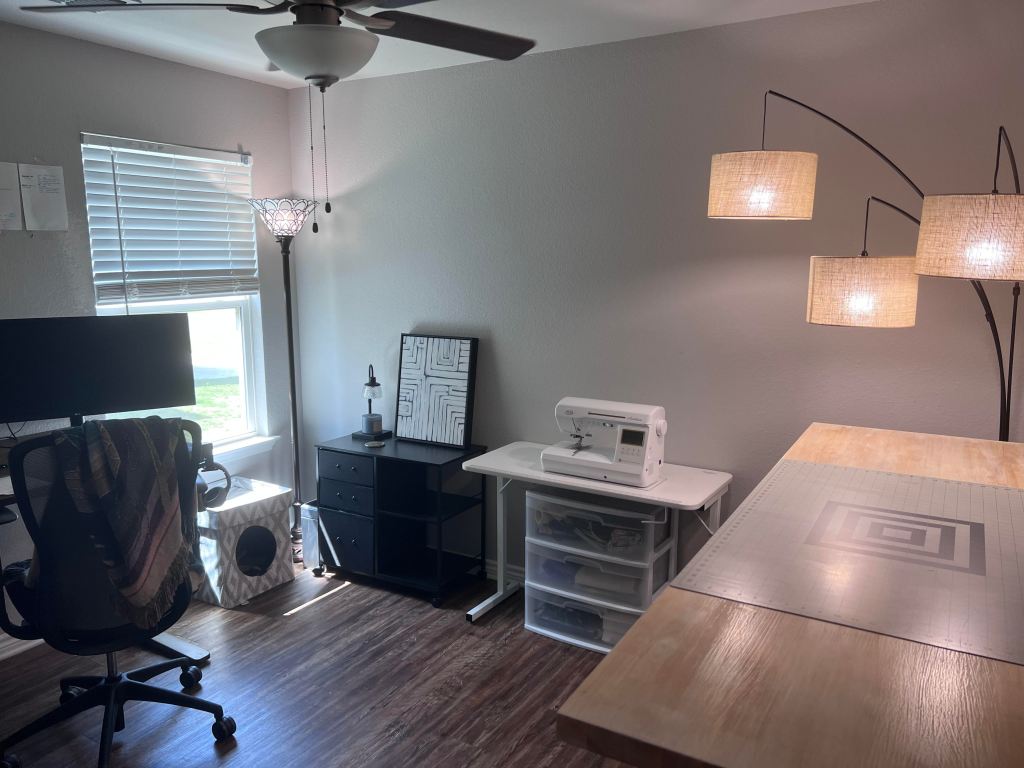 It’s been a year since my office (pictured left) looked this way, and I made many changes to try to make the space work, but being in the room always felt like being at work. As you can see I have work, sewing, and cat items all together. What I needed was for the spaces to feel completely different. The best way I have been able to do this was through the visual outlook of both my work desk, and sewing table. I also moved out the chair (pictured left) and moved all the cat trees together.